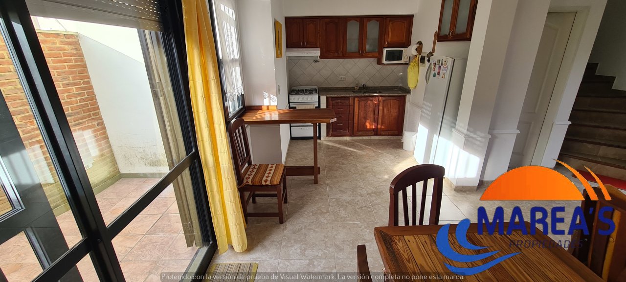 Ingresando amplio y luminoso Living cocina comedor, con un toillet y un gran ventanal con salida al patio con parrilla.