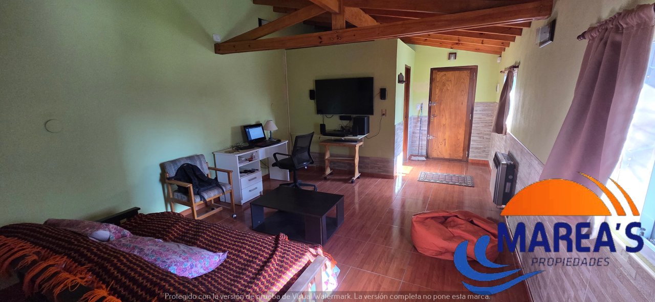 Ubicado en un generoso lote de 15 x 25 metros, este chalet ofrece una solución completa para vivienda permanente, combinando un cómodo hogar principal con una versátil casa de huéspedes.